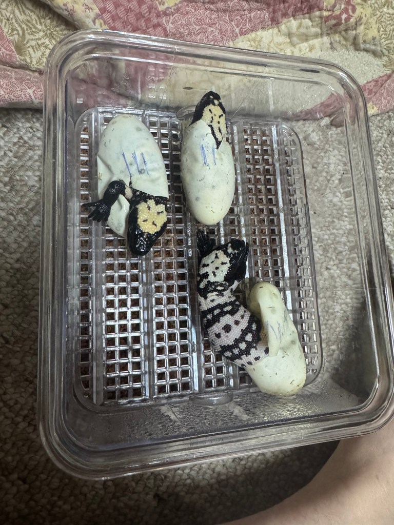 So, it’s been another year of learning, living and loving our precious Gila monsters. Keeping detailed notes is helping to make changes in the future which will lead to greater success and hopefully no more losses. I can’t wait to see what pips out of the egg this year, it truly makes all the struggles and planning worth it when the babies come out!