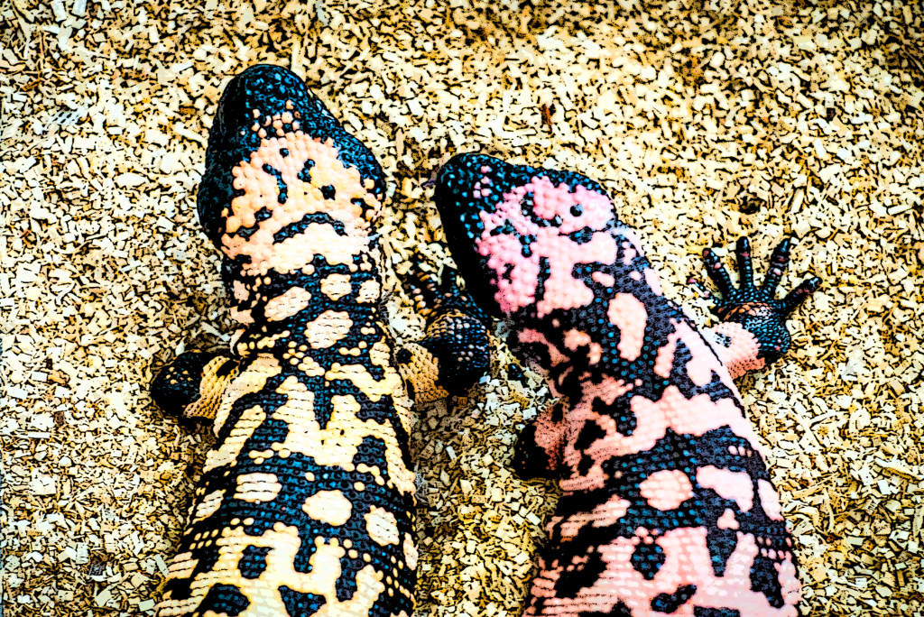 Winston & Heather (reticulated Gila monsters) snooze the day away