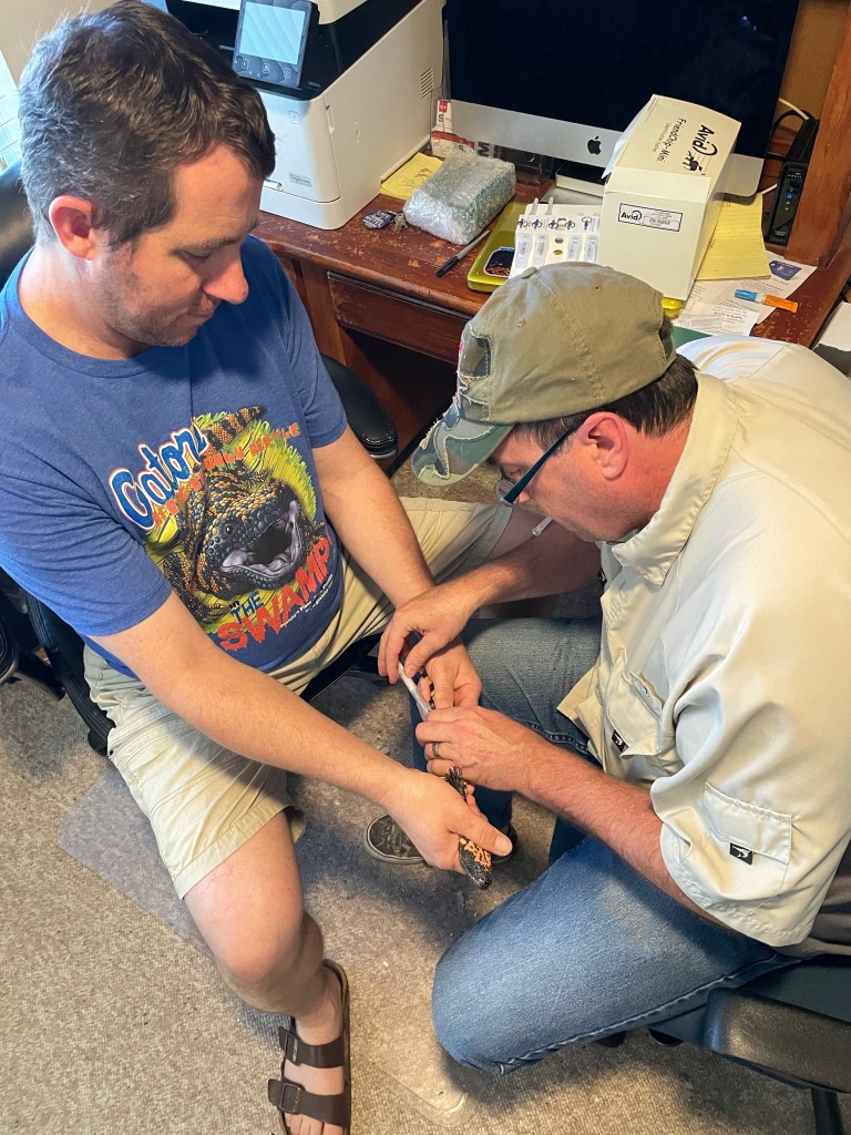 After installing the PIT tag, it was checked with a scanner to be sure it didn’t come out. Handling Gilas is always a risky proposition, be sure to put the safety of yourself and those working with you first!