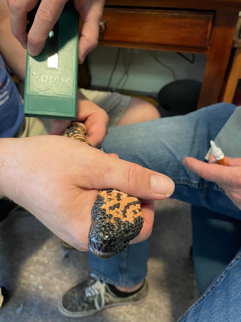 Overall, the procedure is simple and can be done at home with the help of an experienced vet tech or if you are lucky enough to have a good friend knowledgeable in such things (thanks John!), otherwise inquire with your herp vet about the procedure. The health and safety of the animal is always paramount so please don’t take shortcuts on this or any matter concerning your Gilas. I was able to do this at home because I had an experienced friend but would not hesitate to take my Gila monsters to the vet to get the PIT tag installed safely.