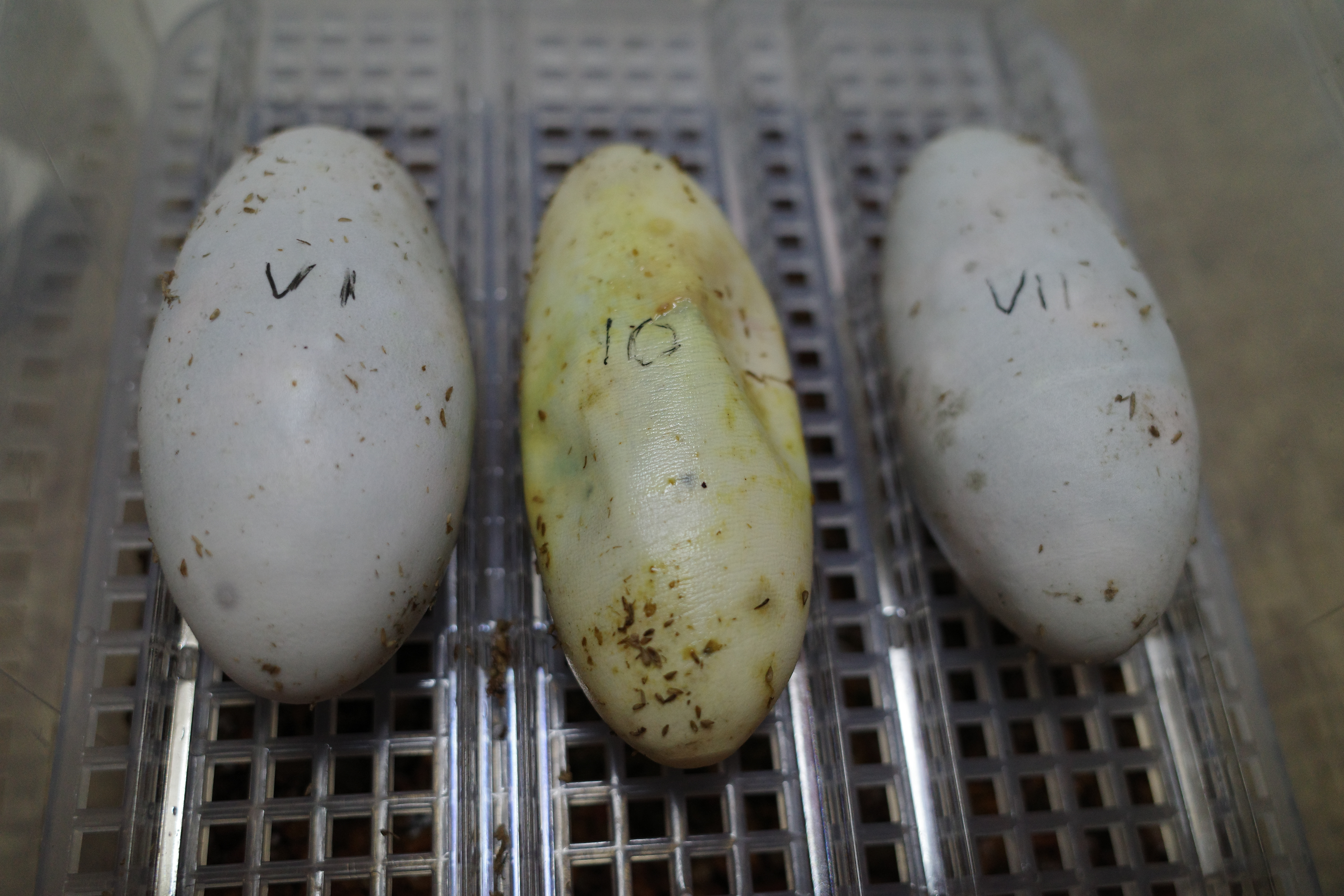 Another unfriendly first this year was an infestation of phorid flies in my Gila monster egg boxes. As this pest has not plagued me yet, it was unnerving to find maggots on dying / dead eggs, and some on good eggs. Did the phorid fly maggots cause the eggs to die, or were they simply drawn to the smell of the decomposing matter? From what I have gathered by speaking to other reptile breeders and checking forums, the maggots do not cause they egg to due, but I am not 100% sold on that answer. Before getting into that topic, it would be good to share what was done to get rid of the fly infestation.