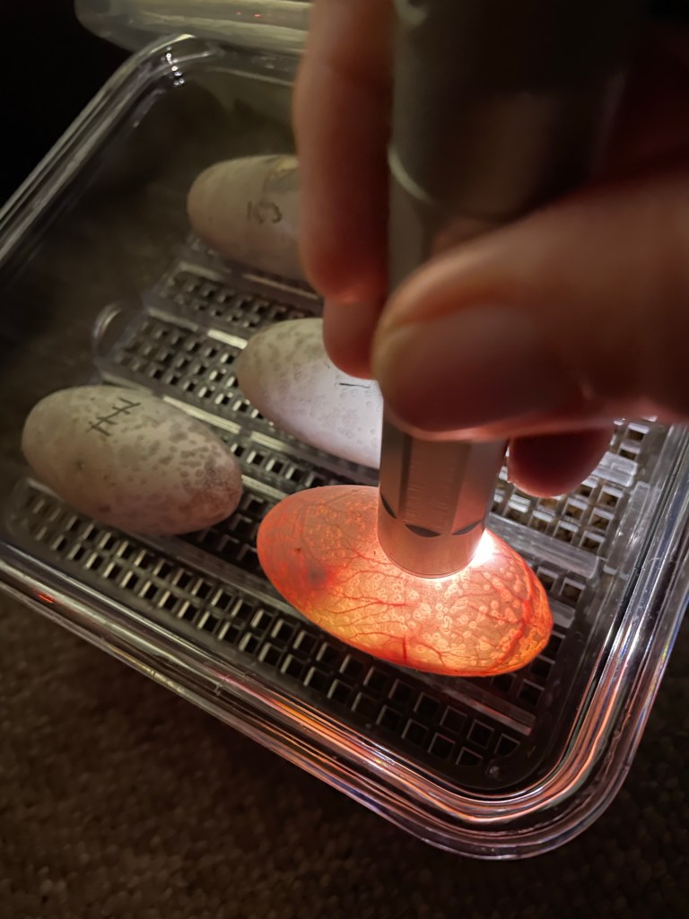As we approach the end of October we have four eggs still in the running. Four out of 15 is not a good ratio but some success is certainly better than none at all! It’s interesting that most eggs go bad within the first 30 days of laying, which says to me that our incubation protocol technique is working. Of course mid and late term and losses have happened but generally most eggs even fertile they are doomed will go bad within the first 30 days. These days I’m checking the incubator daily opening to egg boxes for fresh air as the humidity and temperature continue to remain stable throughout the week incubation period. We are super excited for the birth of our baby Gila monsters – each time I truly feel like a kid during Christmas opening the big gift center left under the tree! As soon as the babies are out we will post pictures and contact those on the waitlist in the order that they joined (Allen you’re up first!).